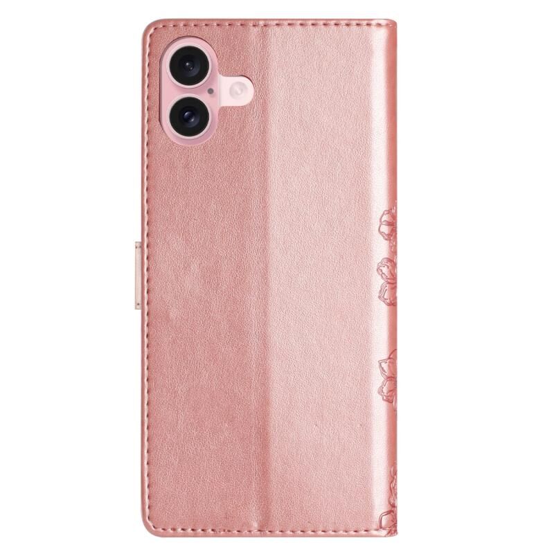 For iPhone 16 Cherry Blossom Butterfly Skin Feel Embossed PU Phone Case(Rose Gold)