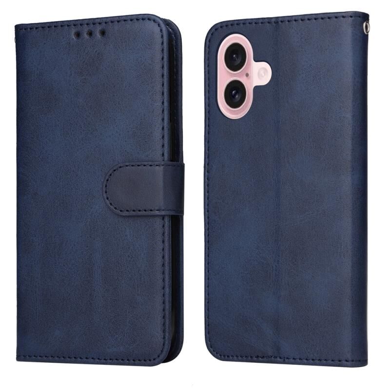 For iPhone 16 Classic Calf Texture Flip Leather Phone Case(Blue)