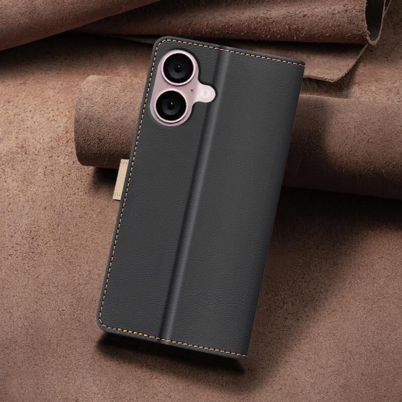 For iPhone 16 Color Matching RFID Anti-theft Leather Phone Case(Black)