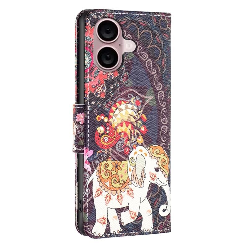 For iPhone 16 Colored Drawing Pattern Flip Leather Phone Case(Flowers Elephant)
