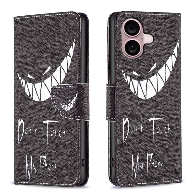 For iPhone 16 Colored Drawing Pattern Leather Phone Case(Smirk)