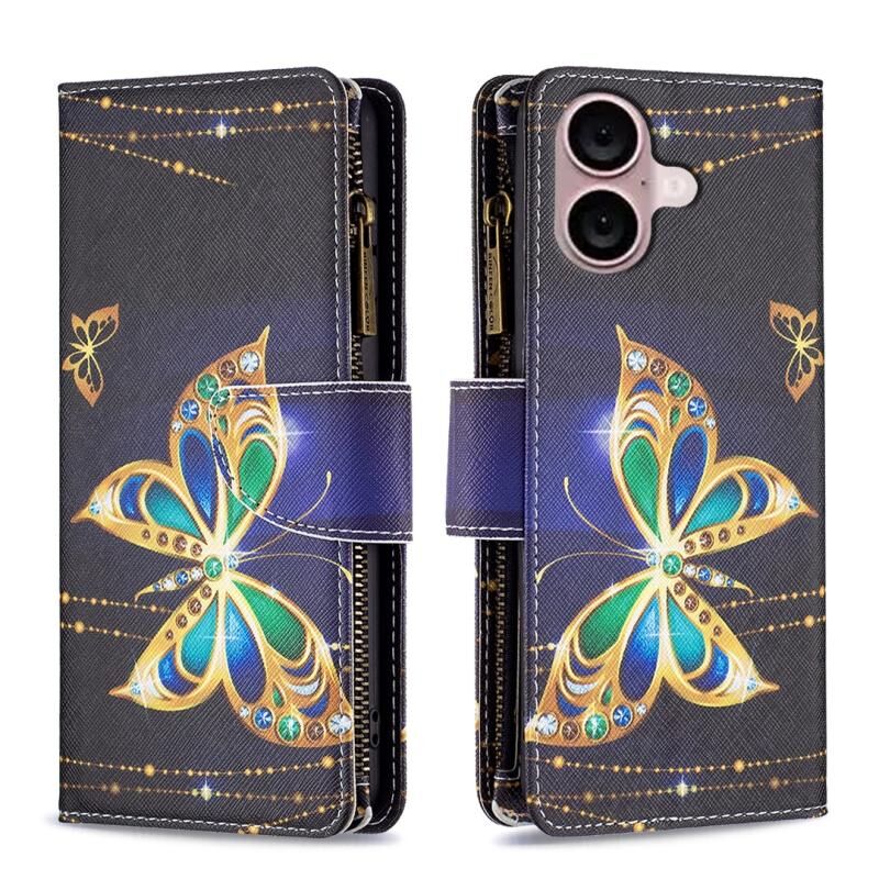 For iPhone 16 Colored Drawing Pattern Zipper Phone Leather Case(Big Butterfly)