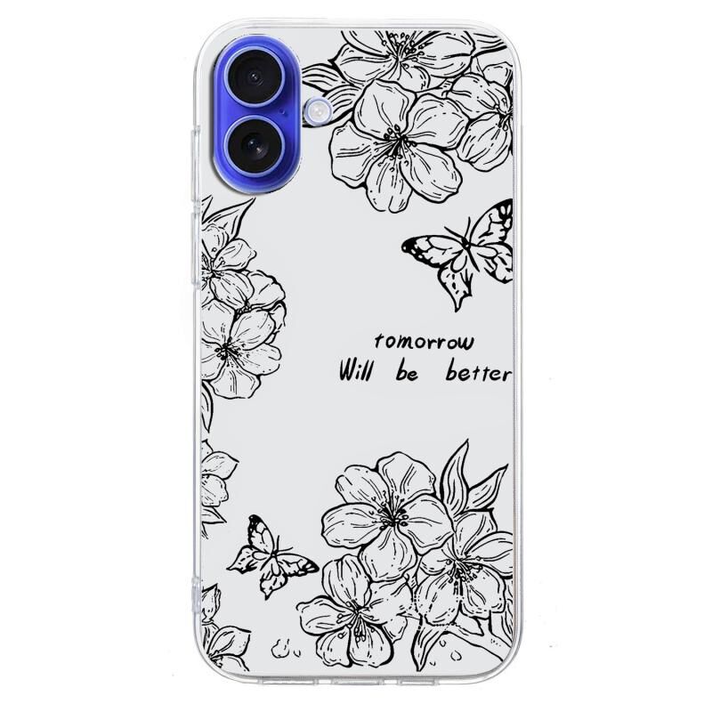 For iPhone 16 Colorful Painting Pattern TPU Phone Case(Butterfly Flower)