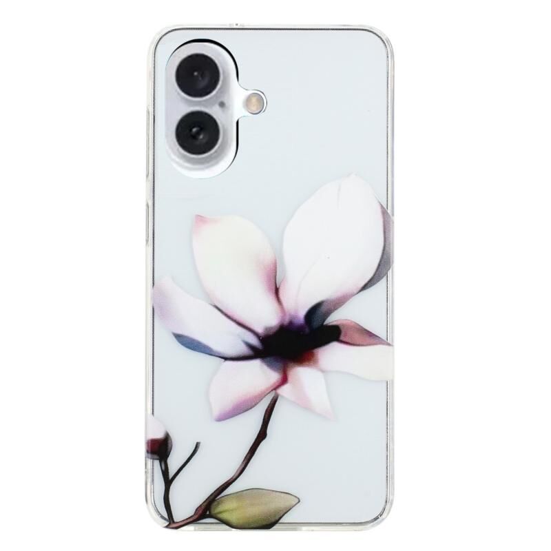 For iPhone 16 Colorful Painting Pattern TPU Phone Case(White Flowers)
