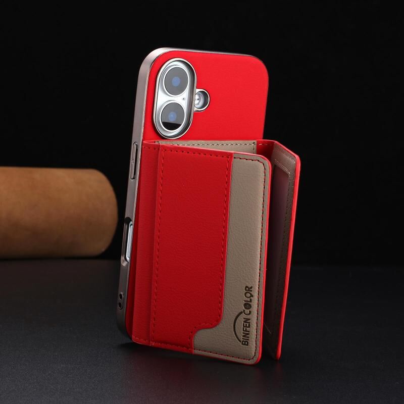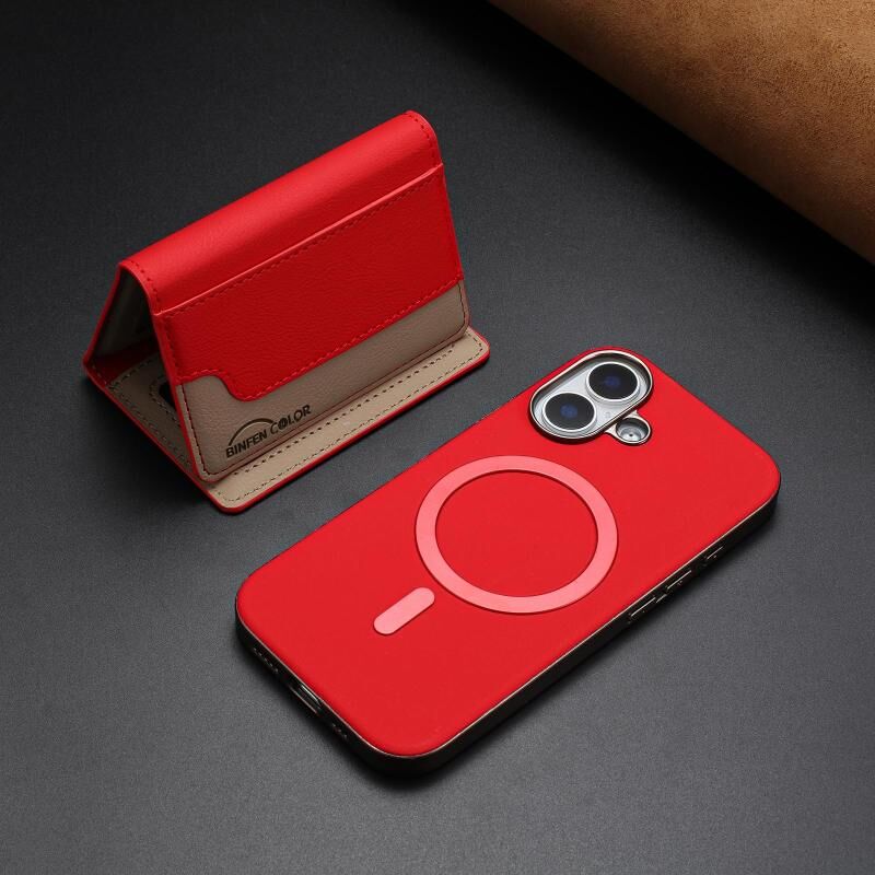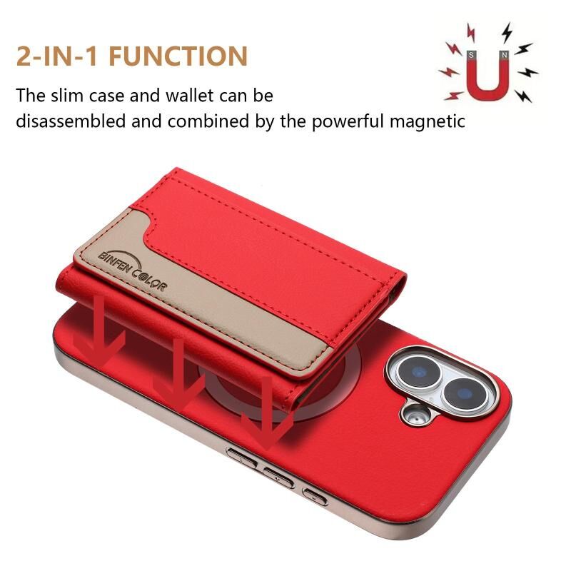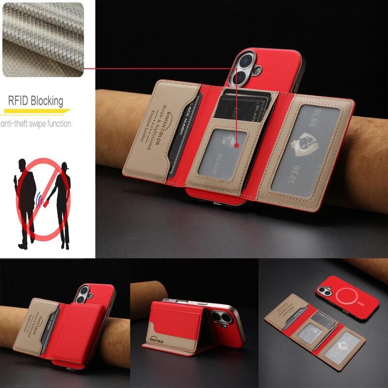 For iPhone 16 Colour Matching Horizontal Magnetic Card Bag RFID MagSafe Phone Case(Red)