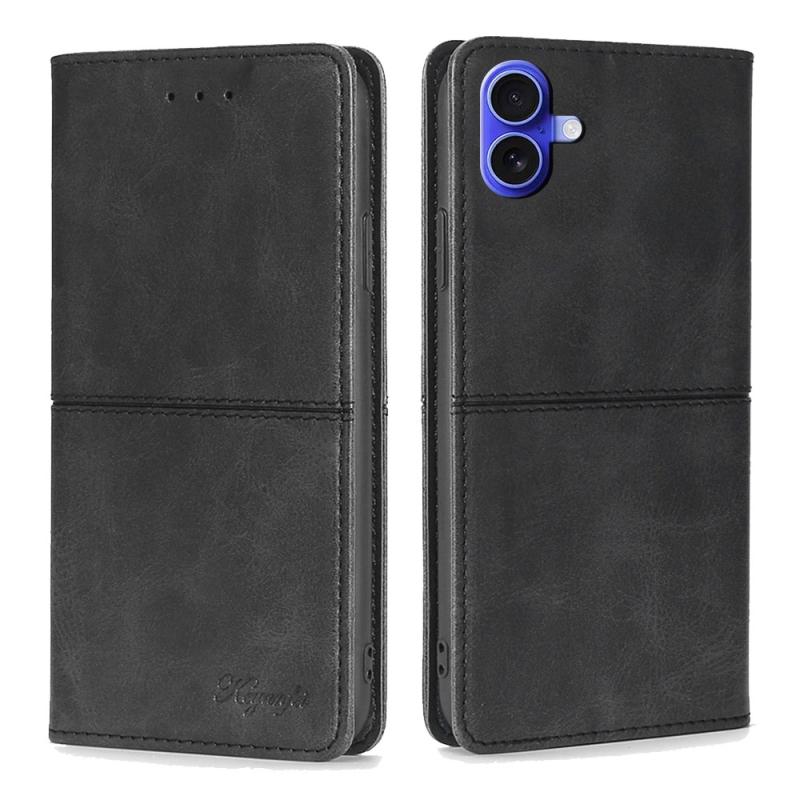 For iPhone 16 Cow Texture Magnetic Leather Phone Case(Black)