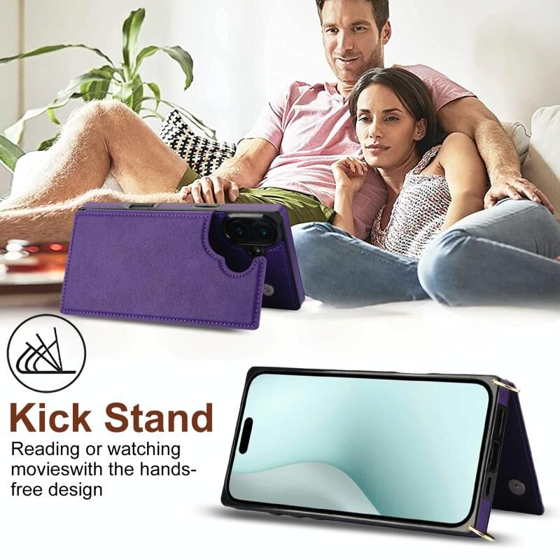 Θήκη τηλεφώνου τύπου πορτοφολιού με κάρτες, διαγώνια, τετράγωνη, με διπλή αγκράφα για iPhone 16 (Μαύρο)