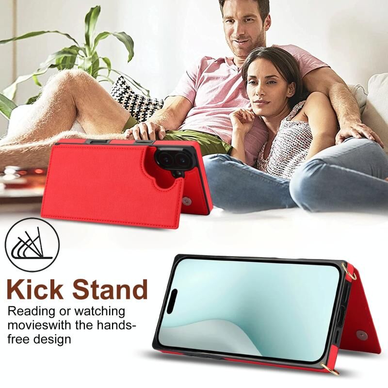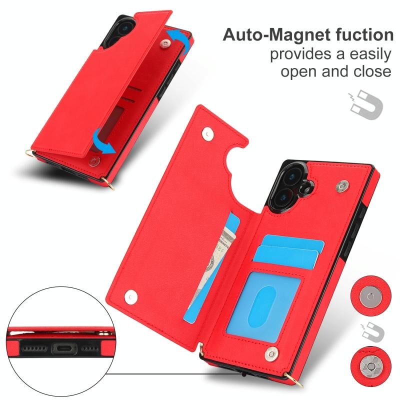 Θήκη τηλεφώνου τύπου πορτοφολιού με κάρτες, διαγώνια, τετράγωνη, με διπλή αγκράφα για iPhone 16 (Μαύρο)