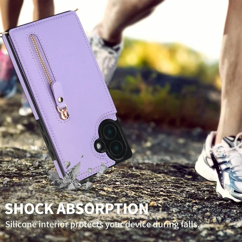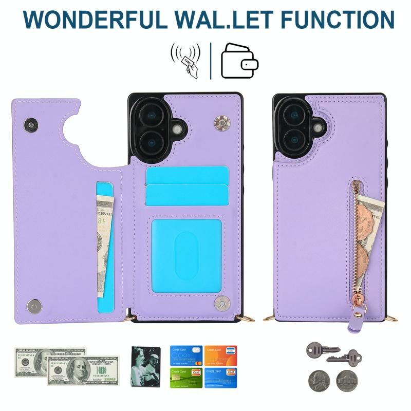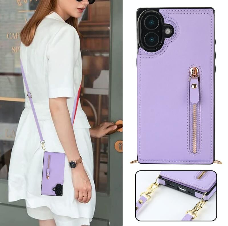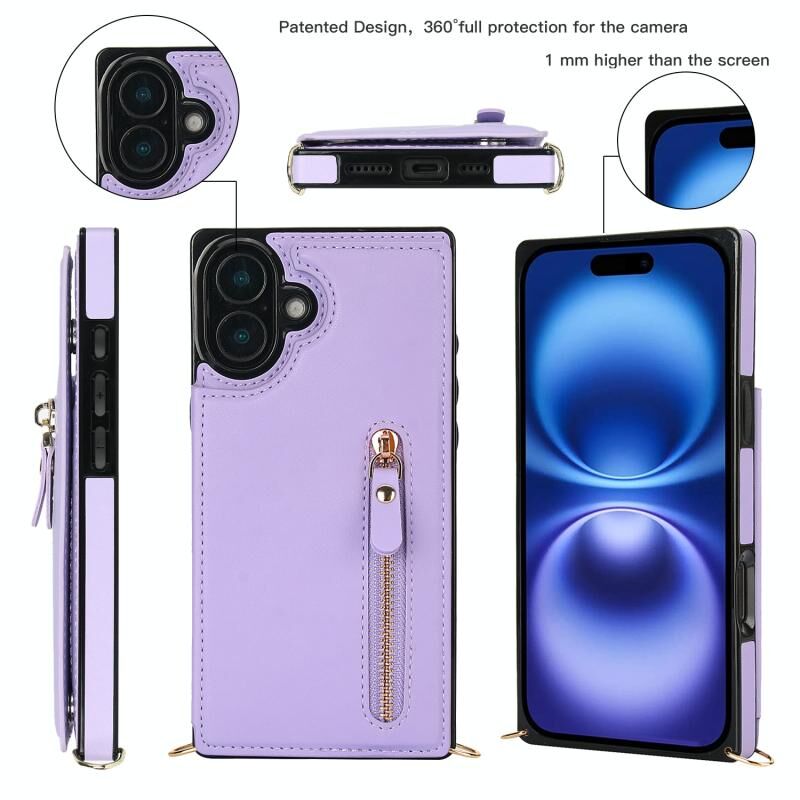 Θήκη τηλεφώνου Cross-body με φερμουάρ και τετράγωνο σχήμα για iPhone 16 (Μωβ)