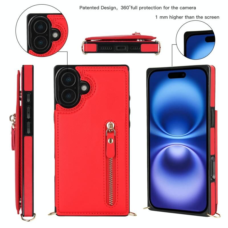 Θήκη τηλεφώνου Cross-body με φερμουάρ και τετράγωνο σχήμα για iPhone 16 (Μωβ)