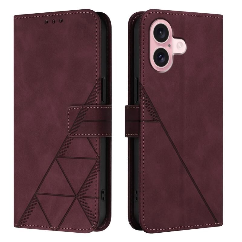 For iPhone 16 Crossbody 3D Embossed Flip Leather Phone Case(Wine Red)