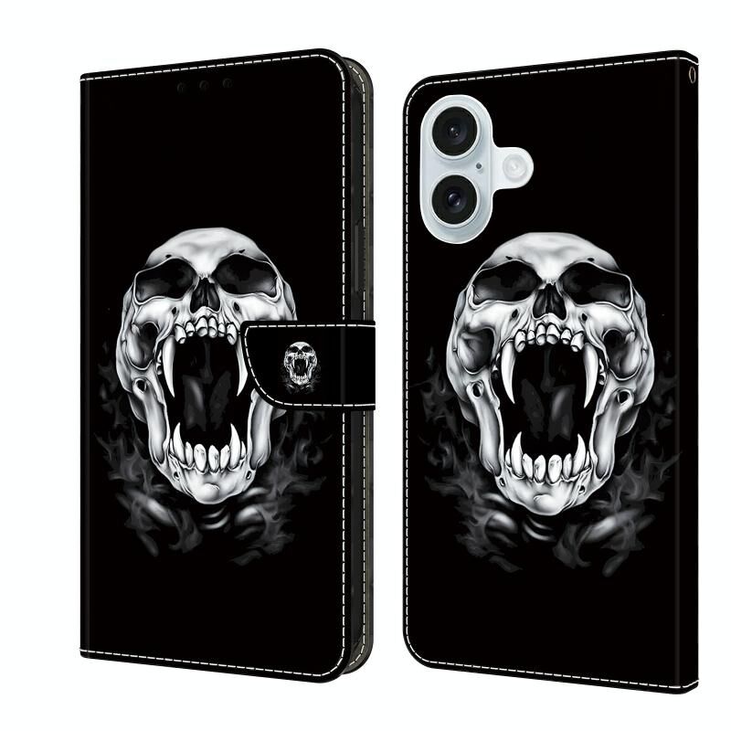 Θήκη τηλεφώνου από κρυστάλλινο βαμμένο δέρμα για iPhone 16 (Κρανίο)