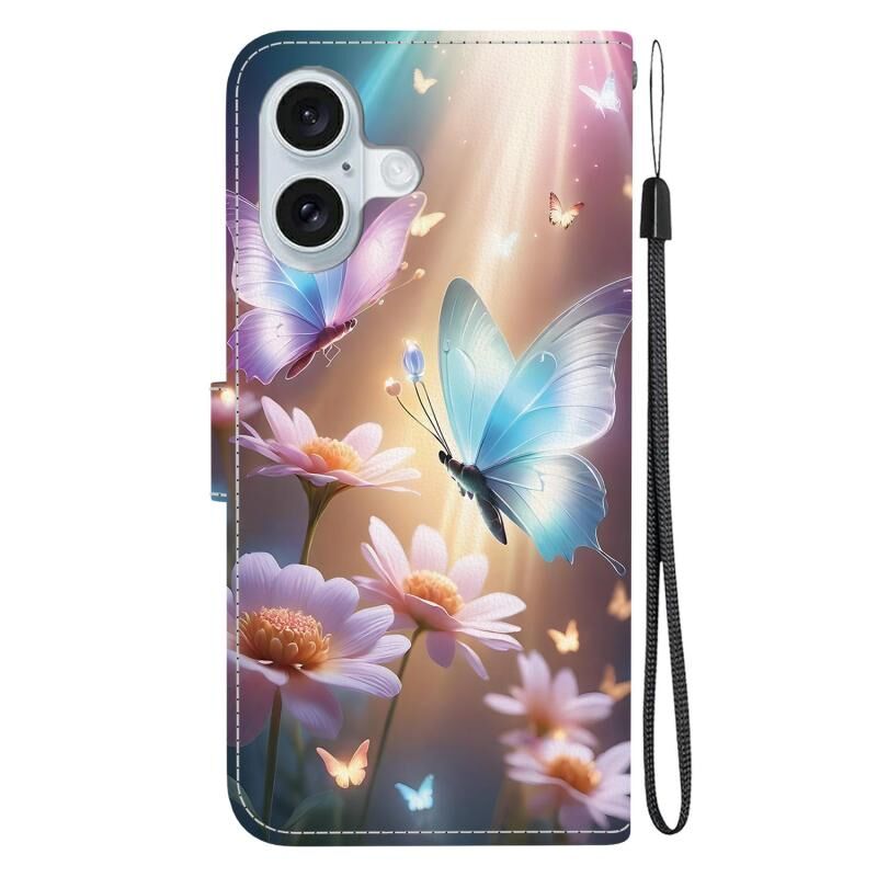 For iPhone 16 Crystal Texture Colored Drawing Leather Phone Case(Butterfly Love Flower)