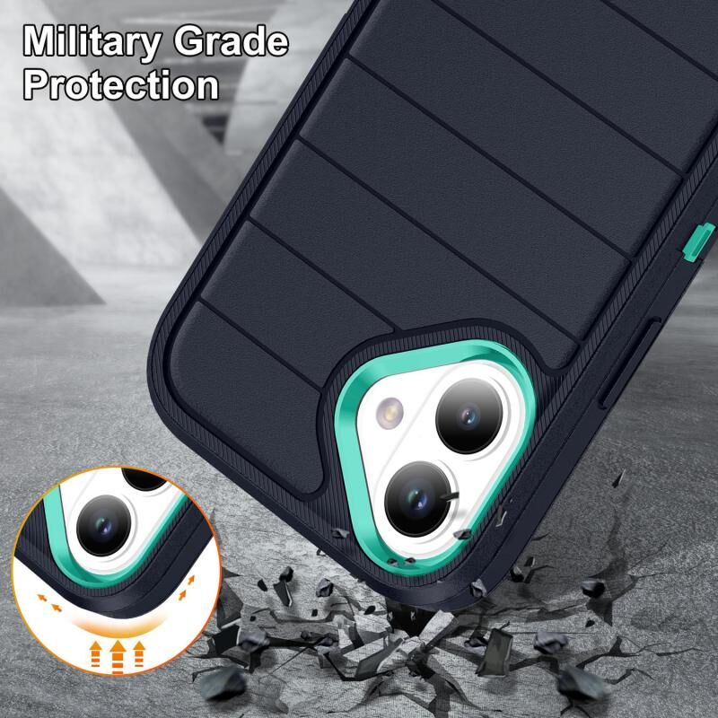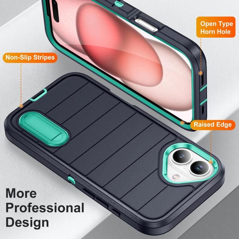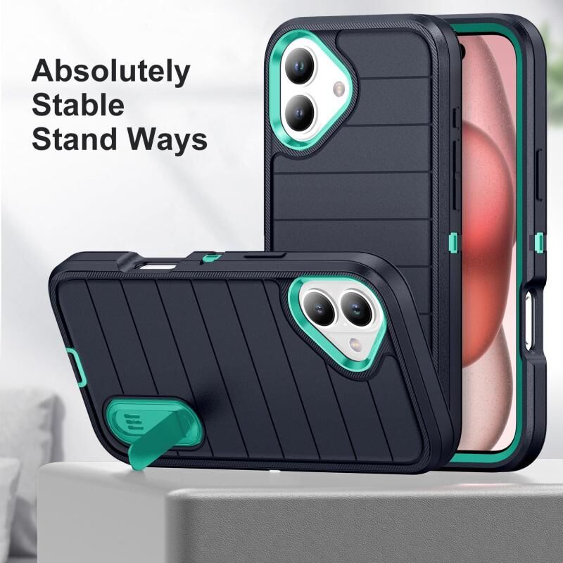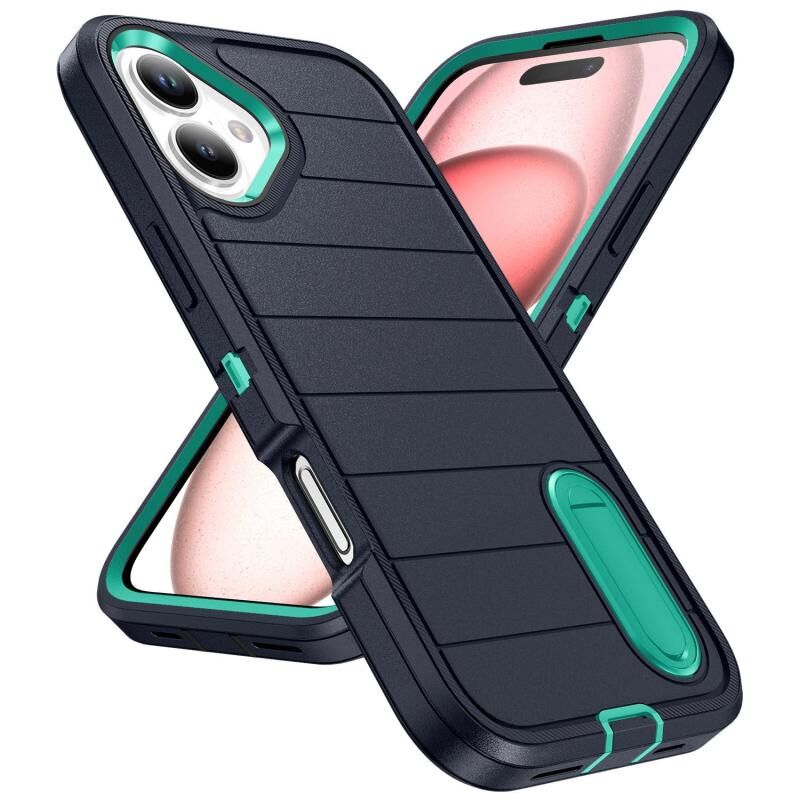 For iPhone 16 Defender Gen2 Rugged PC + Silicone Phone Case with Holder(Dark Blue+Cyan)
