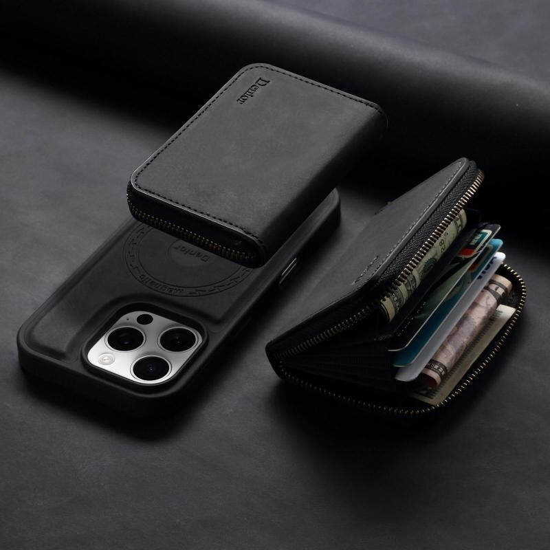 2. Αποσπώμενη Σχεδίαση Θήκης Κάρτας με Φερμουάρ: Η θήκη και η θήκη καρτών με φερμουάρ μπορούν εύκολα να αποσπαστούν και να συνδυαστούν χρησιμοποιώντας ισχυρούς μαγνήτες.