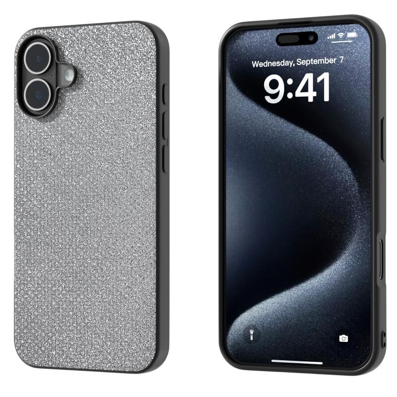 Θήκη τηλεφώνου για iPhone 16, Μαύρο Διαμαντένιο Πλαίσιο (Ασημί Κοσμήματος)