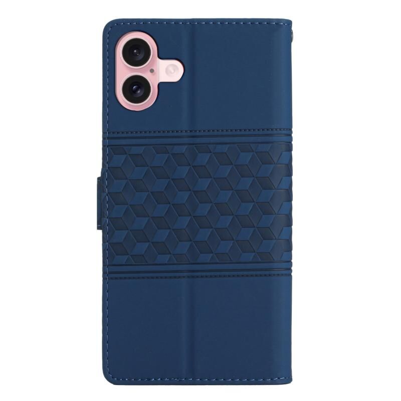 For iPhone 16 Diamond Embossed Skin Feel Leather Phone Case(Dark Blue)