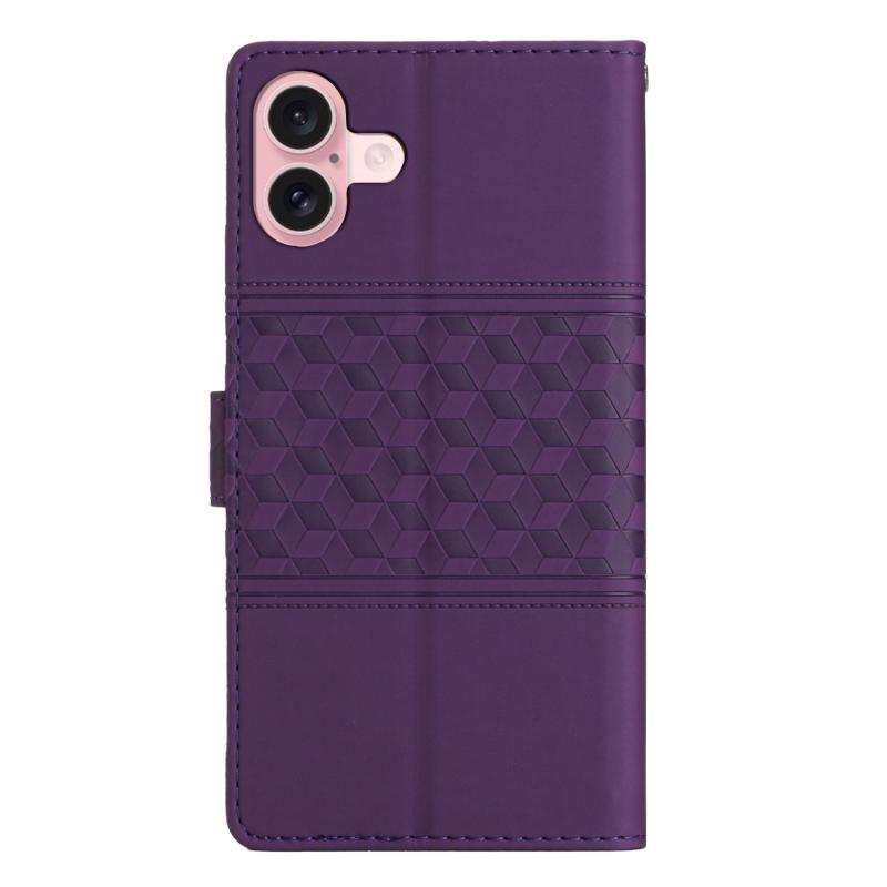 For iPhone 16 Diamond Embossed Skin Feel Leather Phone Case(Purple)