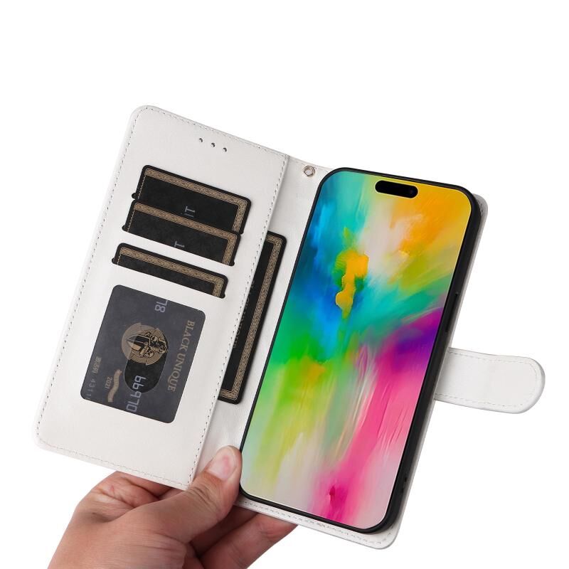 Θήκη για iPhone 16, Δερμάτινη με ανάγλυφο σχέδιο διαμαντιού, Πτυσσόμενη (Λευκό)