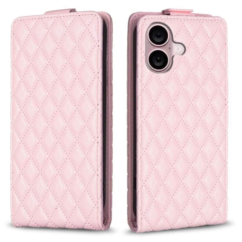 For iPhone 16 Diamond Lattice Vertical Flip Leather Phone Case(Pink)