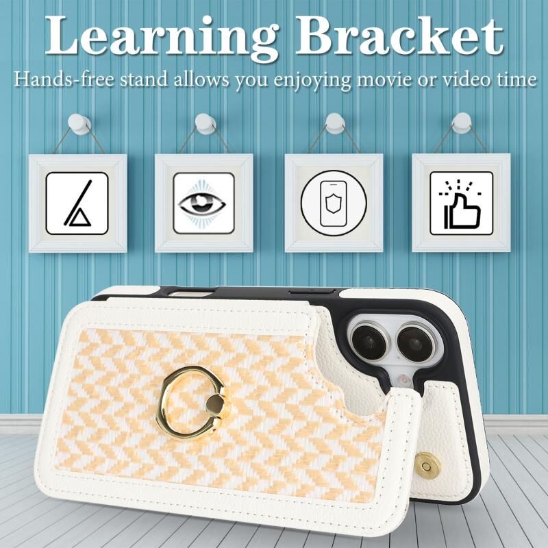 Θήκη τηλεφώνου πλήρους κάλυψης για iPhone 16 με διπλή θήκη για κάρτες και λουρί χιαστί (Λευκό)