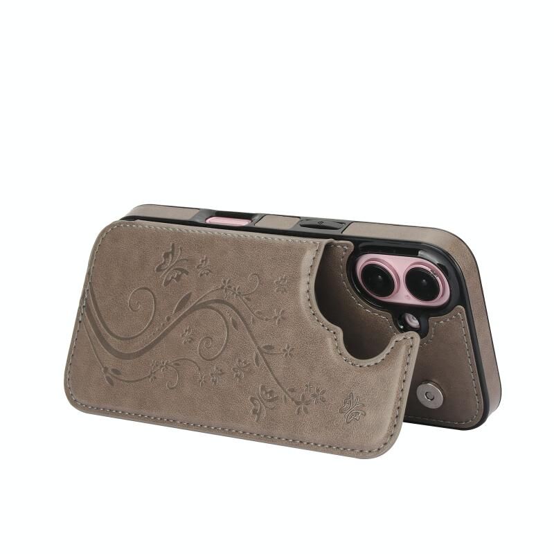 Θήκη τηλεφώνου για iPhone 16 με διπλή αγκράφα, ανάγλυφο πεταλούδας από PU (Ροζ)