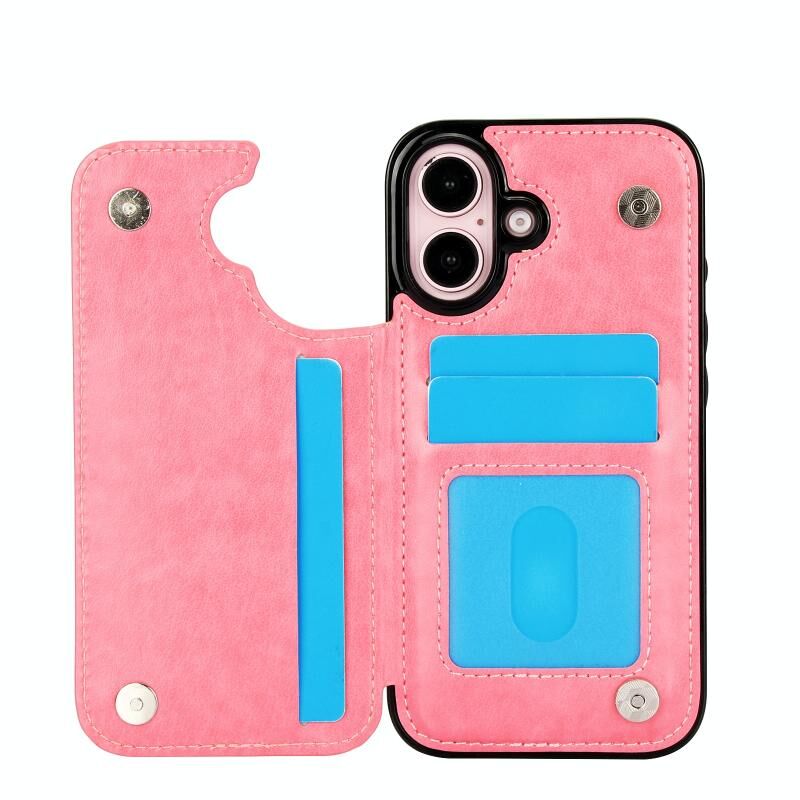 Θήκη τηλεφώνου για iPhone 16 με διπλή αγκράφα, ανάγλυφο πεταλούδας από PU (Ροζ)