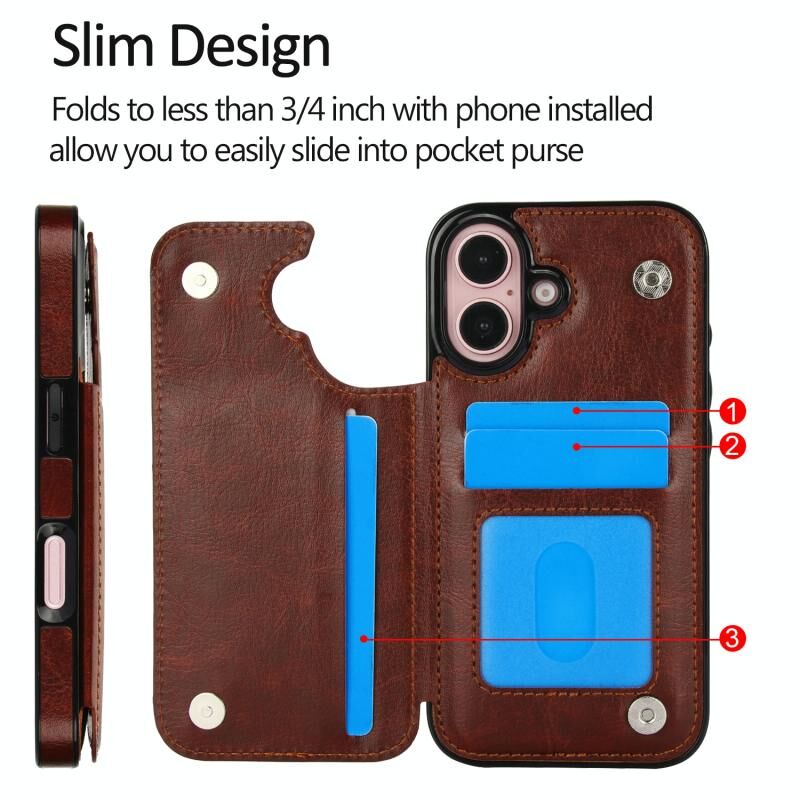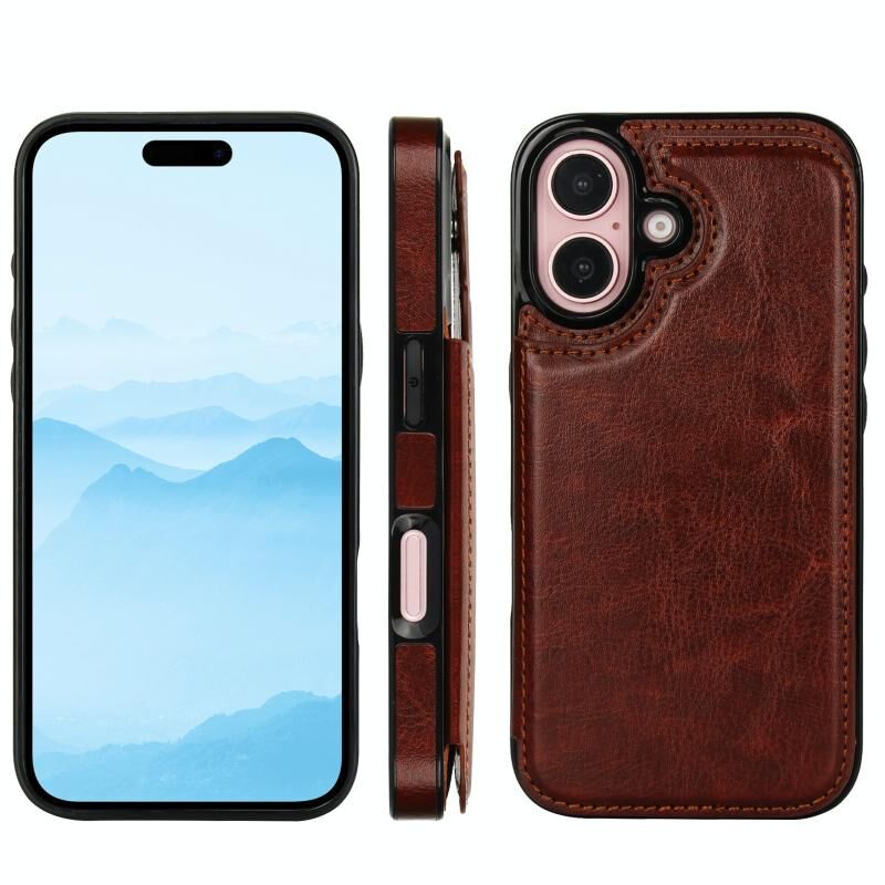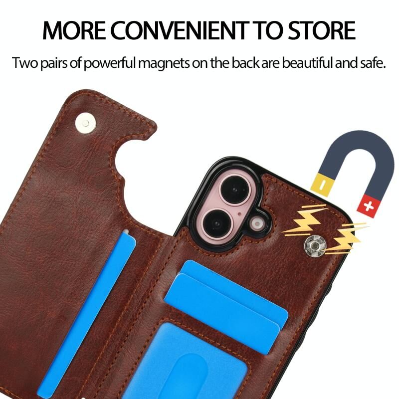 For iPhone 16 Double Buckle Crazy Horse Texture PU Phone Case(Brown)