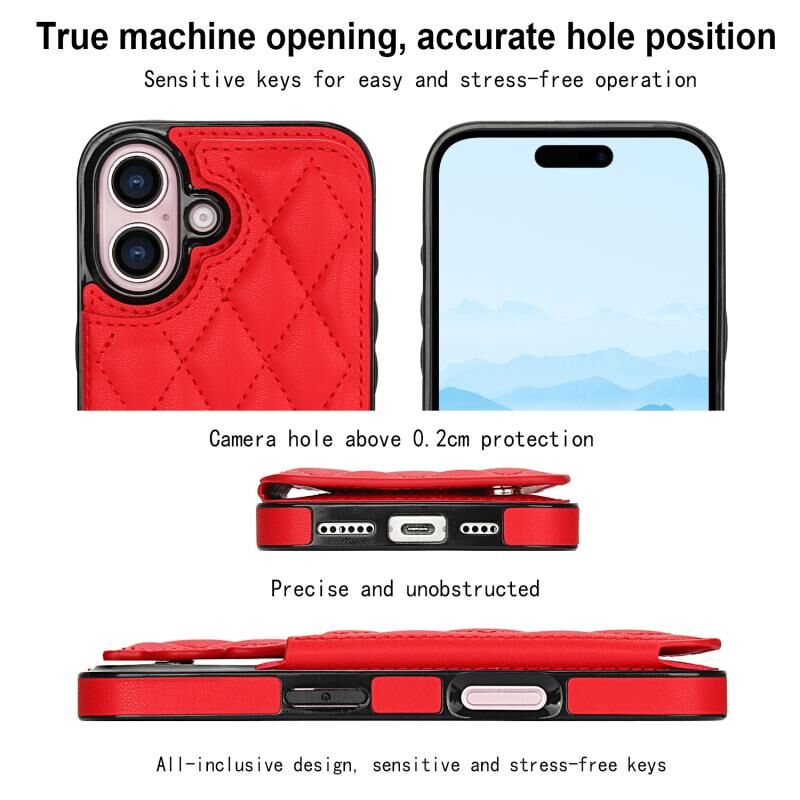 Θήκη τηλεφώνου για iPhone 16 Διπλή Αγκράφα Ρομβοειδές Δερμάτινο PU (Λευκό)
