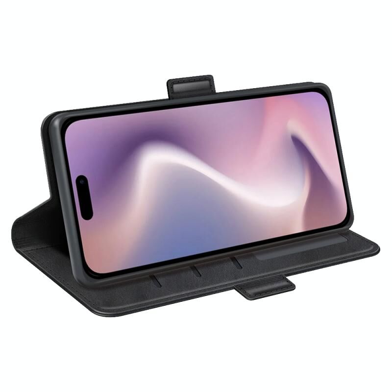 Για iPhone 16 Διπλής όψης μαγνητική πόρπη οριζόντια Flip δερμάτινη θήκη τηλεφώνου (Μαύρο)