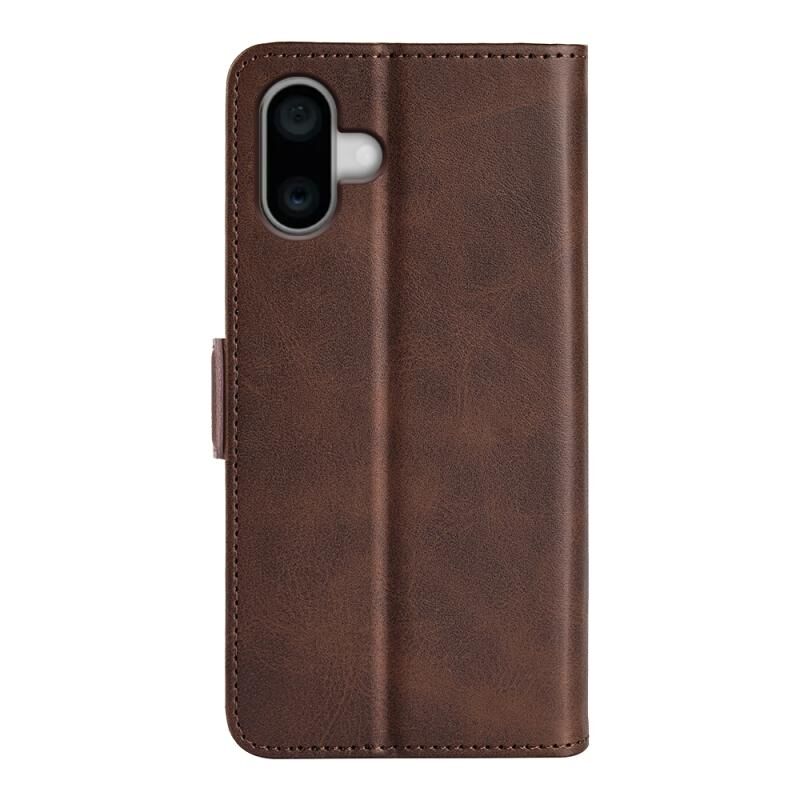 Για iPhone 16 διπλής όψης μαγνητική πόρπη οριζόντια Flip δερμάτινη θήκη τηλεφώνου (καφέ)