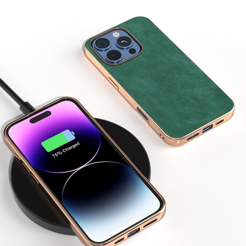 For iPhone 16 Electroplated Frame PU Leather Full Coverage Phone Case(Green)