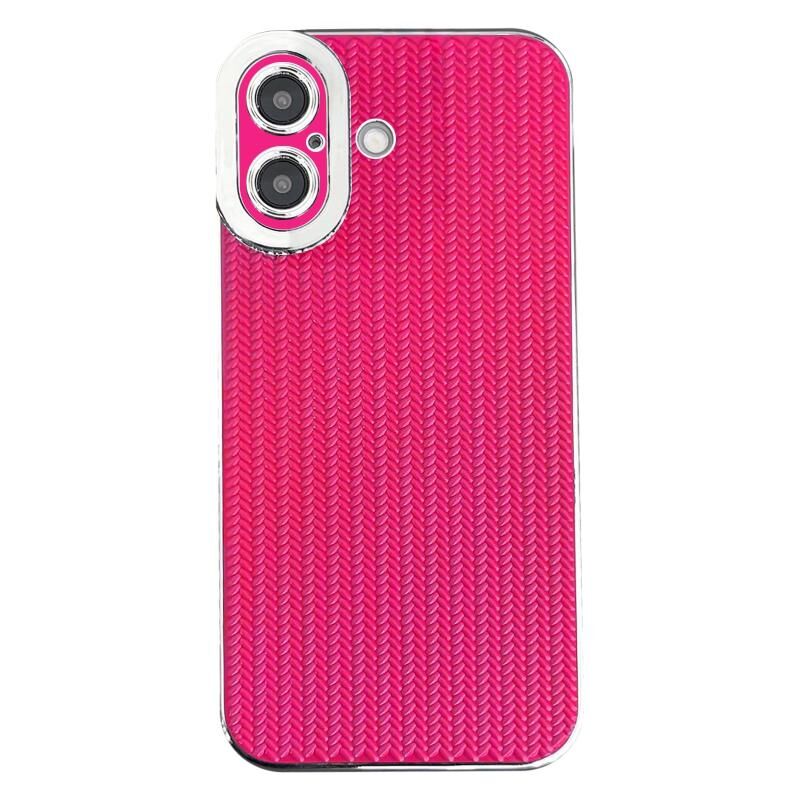 For iPhone 16 Electroplated Silver Edge Grain Texture TPU Phone Case(Rose Red)