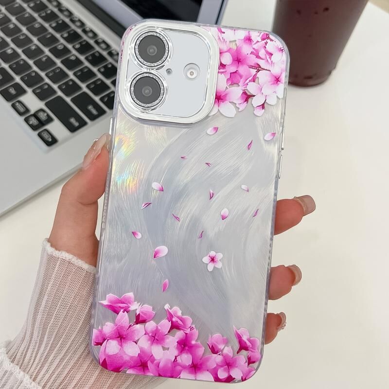 For iPhone 16 Electroplating Flowers Plants Texture TPU Phone Case(Sakura FL12)