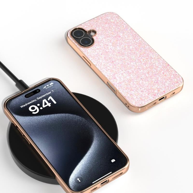 For iPhone 16 Electroplating Frame Colorful Glitter Phone Case(Pink)