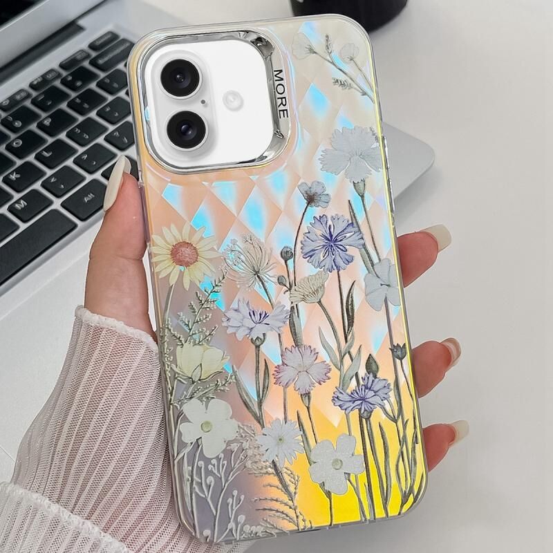 For iPhone 16 Electroplating Laser Flower Texture TPU Phone Case(Chrysanthemum AH5)