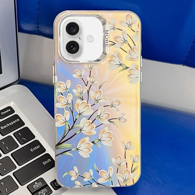 For iPhone 16 Electroplating Laser Flower Texture TPU Phone Case(Pear Blossom AH17)