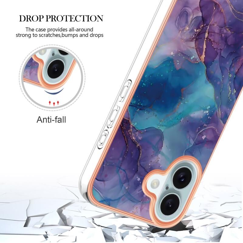 For iPhone 16 Electroplating Marble Dual-side IMD Phone Case(Purple 016)
