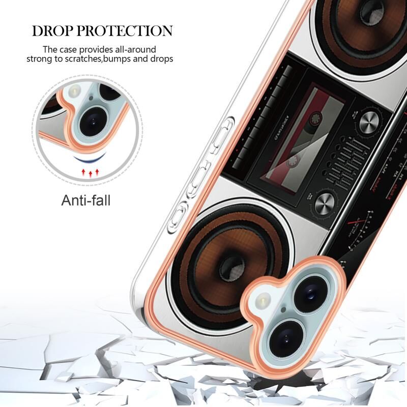 Θήκη τηλεφώνου για iPhone 16 με ηλεκτρολυτική μαρμάρινη όψη IMD διπλής όψης (Ρετρό Ραδιόφωνο)
