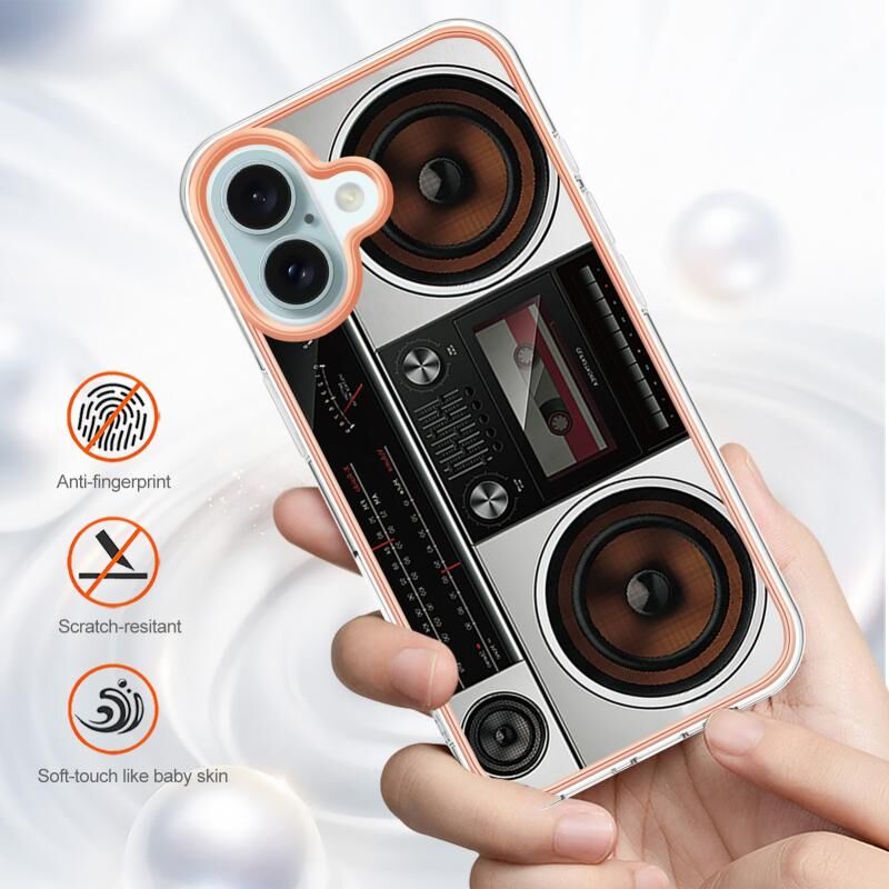 For iPhone 16 Electroplating Marble Dual-side IMD Phone Case(Retro Radio)