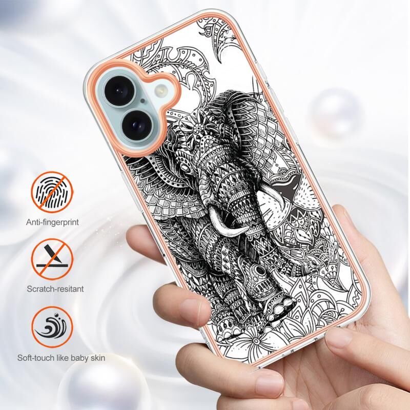 Θήκη τηλεφώνου για iPhone 16 με ηλεκτρολυτική μαρμάρινη όψη IMD διπλής όψης (Totem Elephant)