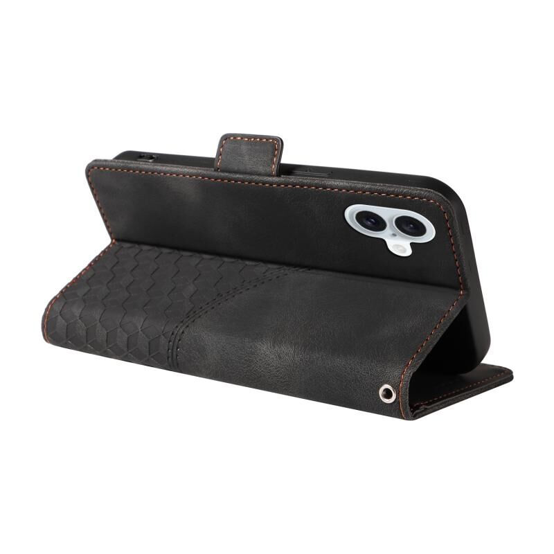 Θήκη τηλεφώνου από δέρμα με ανάγλυφο ρόμβο και αστρικό σχέδιο για iPhone 16 (Πράσινο)
