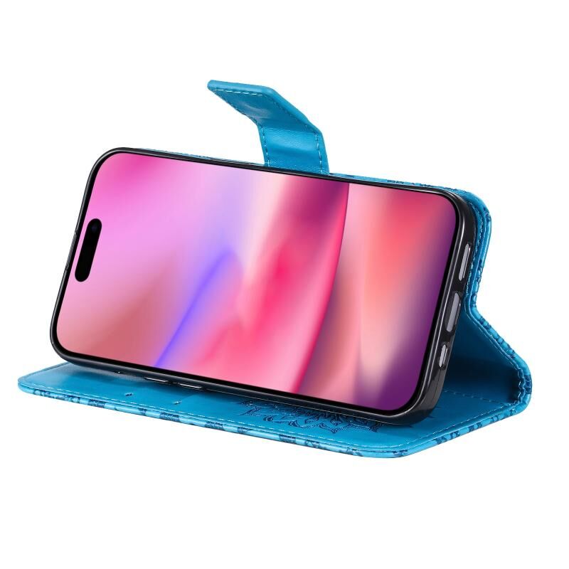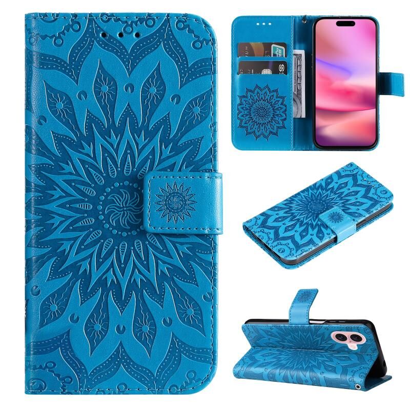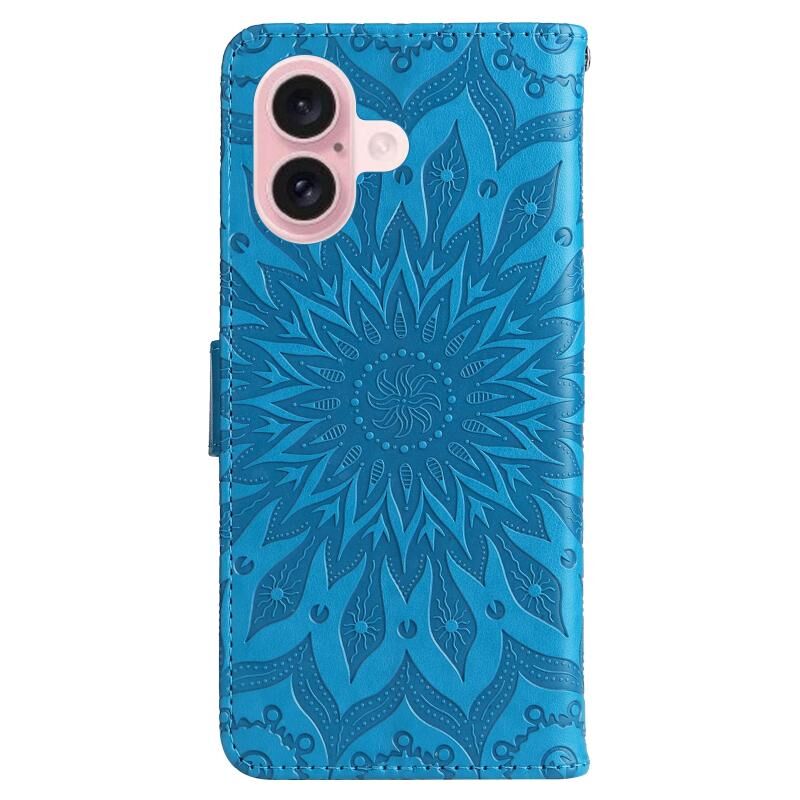 For iPhone 16 Embossed Sunflower Pattern Flip Leather Phone Case(Blue)