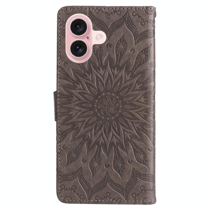 For iPhone 16 Embossed Sunflower Pattern Flip Leather Phone Case(Grey)