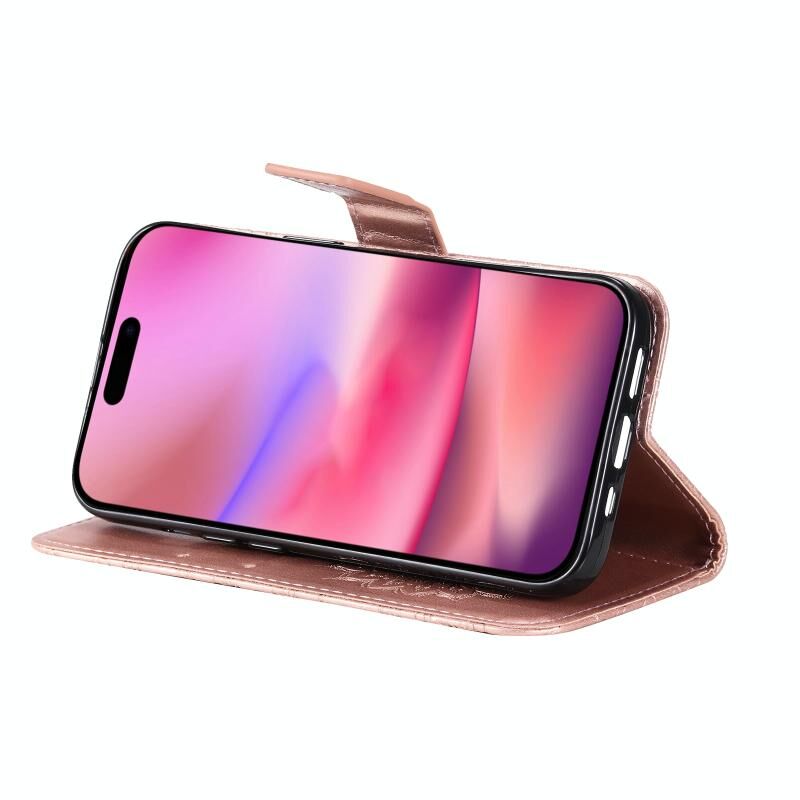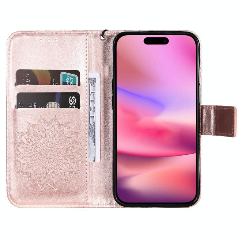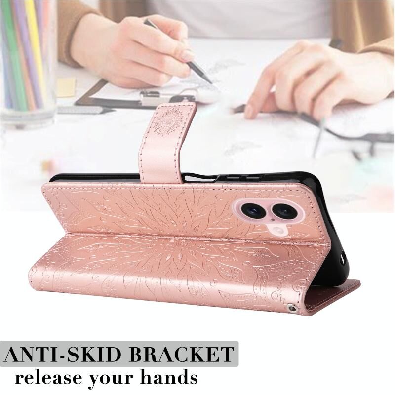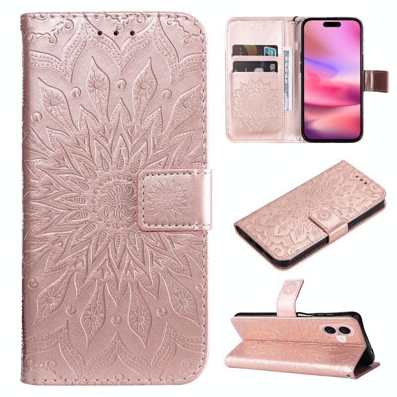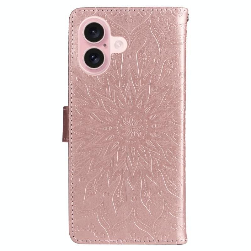 For iPhone 16 Embossed Sunflower Pattern Flip Leather Phone Case(Rose Gold)