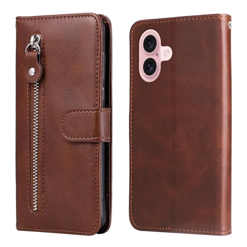 For iPhone 16 Fashion Calf Texture Zipper Leather Phone Case(Brown)