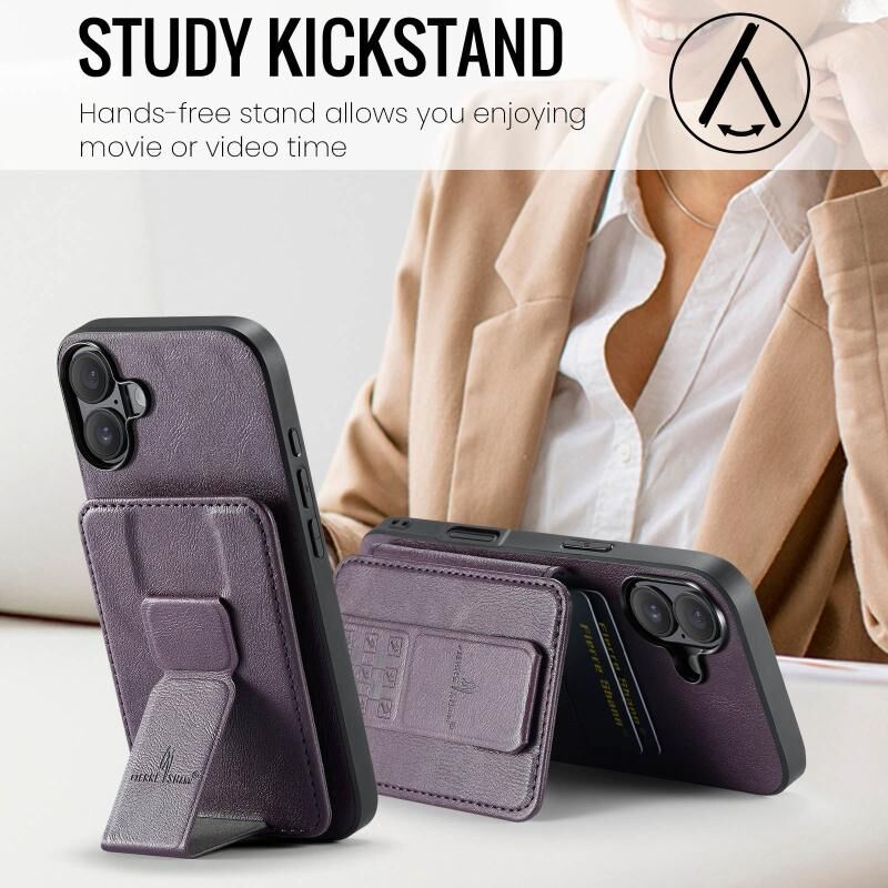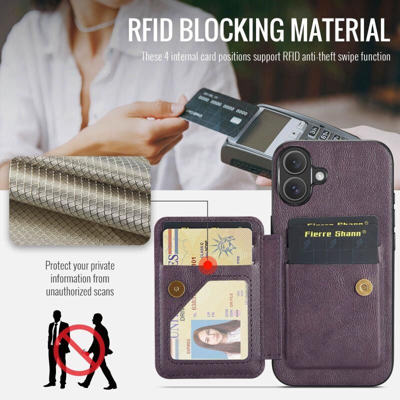 For iPhone 16 Fierre Shann Oil Wax Cow Leather Card Holder Back Phone Case(Purple) (FIERRE SHANN)