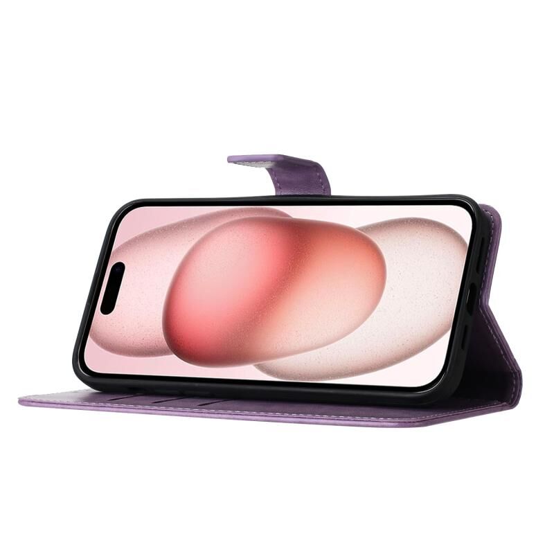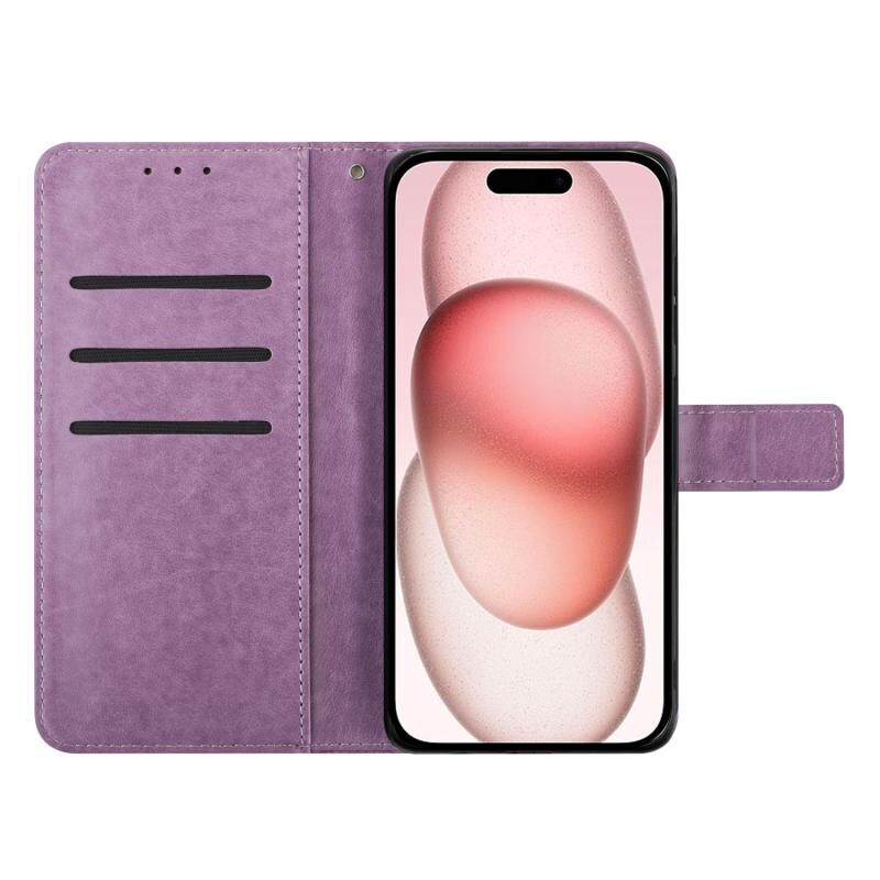 For iPhone 16 Flower Embossed Leather Phone Case(Purple)
