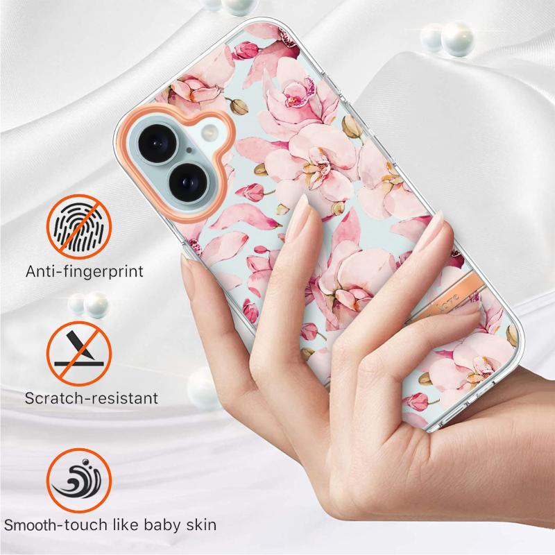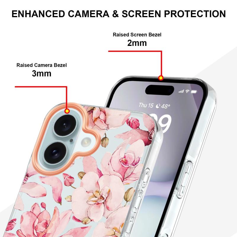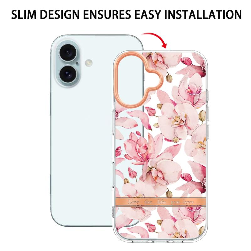 For iPhone 16 Flowers and Plants Series IMD TPU Phone Case(Pink Gardenia)