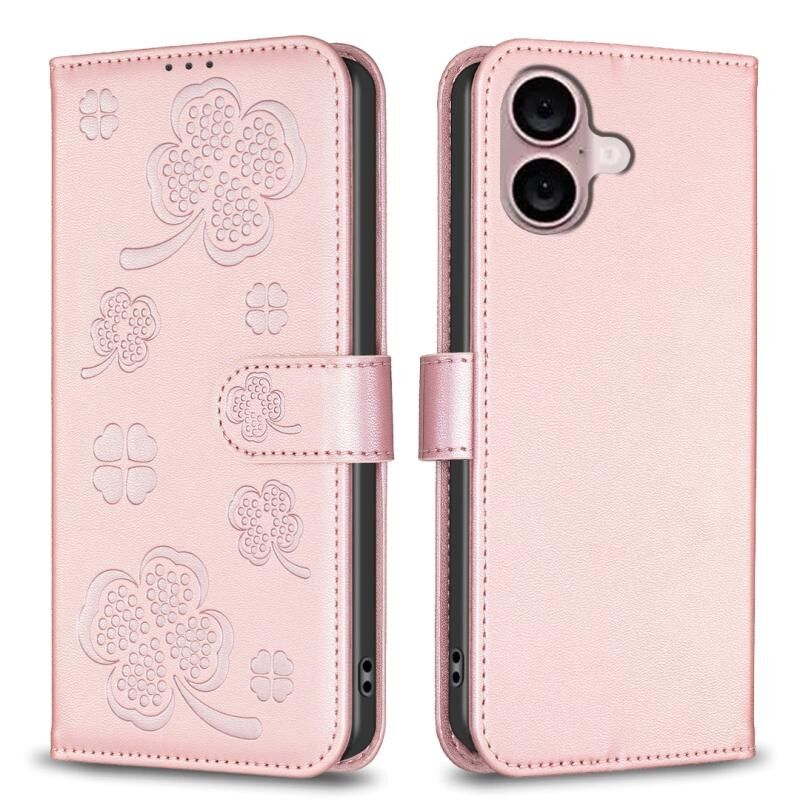 Θήκη τηλεφώνου από ανάγλυφο δέρμα για iPhone 16 (Κόκκινο Τριαντάφυλλο)